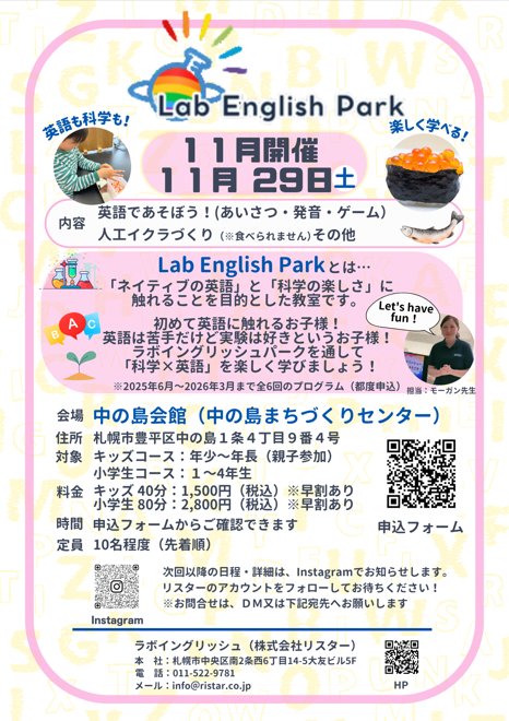11月の内容:英語で遊ぼう!人工イクラを作ろう!※食べられません、容器に入れてお持ち帰りできます